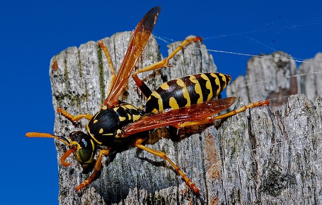 There are over one hundred thousand species of wasps all around the world. Wasps spend most of their time gathering food or building a nest for a colony with one egg laying queen and many non-reproductive workers. Wasps become pests when their numbers are excessive or they become annoying to humans. People are often stung by wasps in late summer when wasp workers start searching for sugary food and come into contact with humans. Stings are usually painful and in some cases may cause life-threatening allergic reactions.